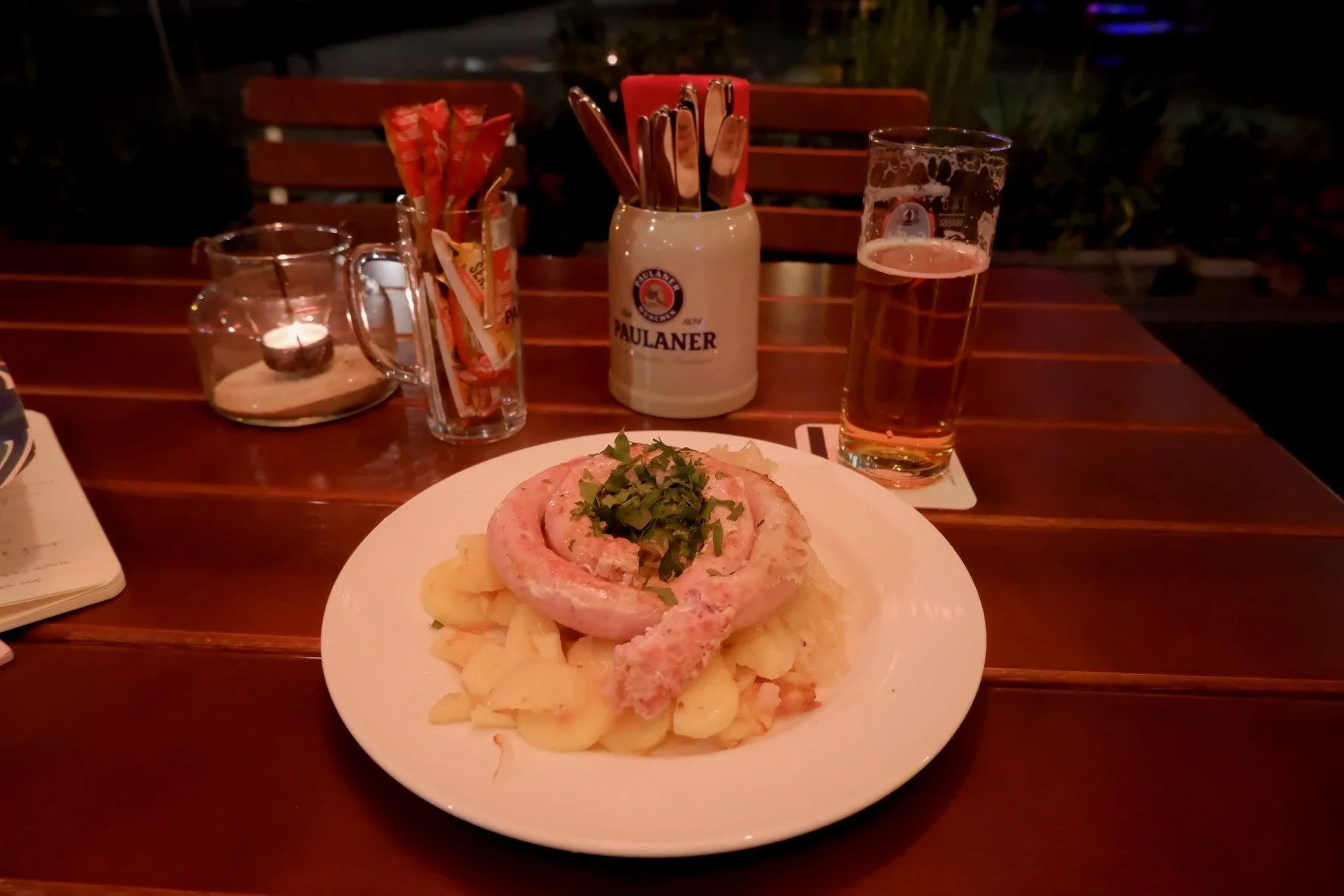 I went to a spot I had scoped out for dinner the night before, Brauhaus Sünner im Walfisch, which Google Maps describes as “Traditional beer hall in a 1600s stepped-gable house, serving house-brewed Kölsch & meaty dishes.” Acccurate.