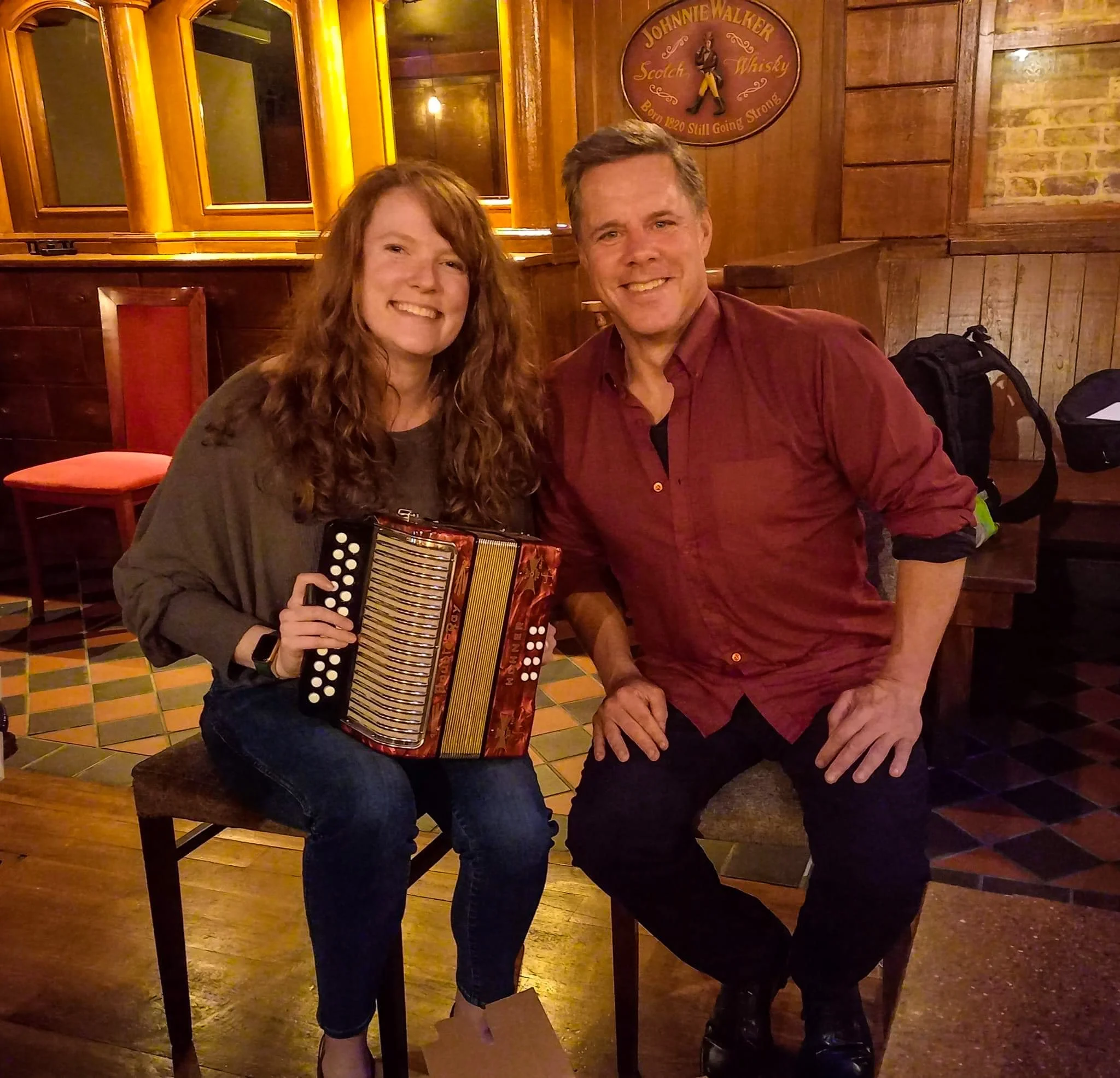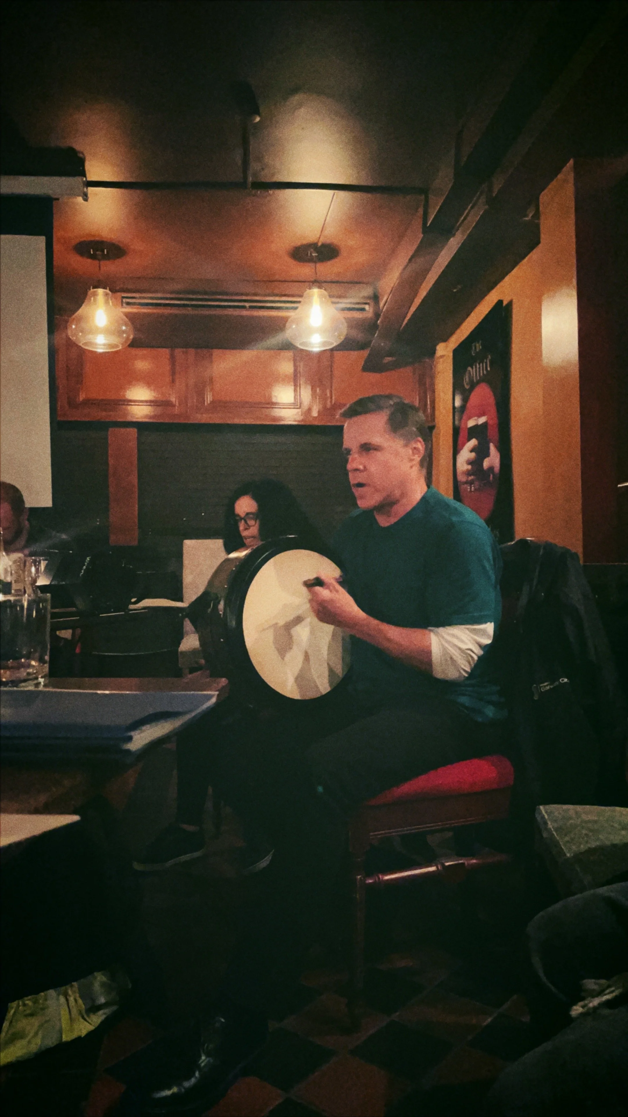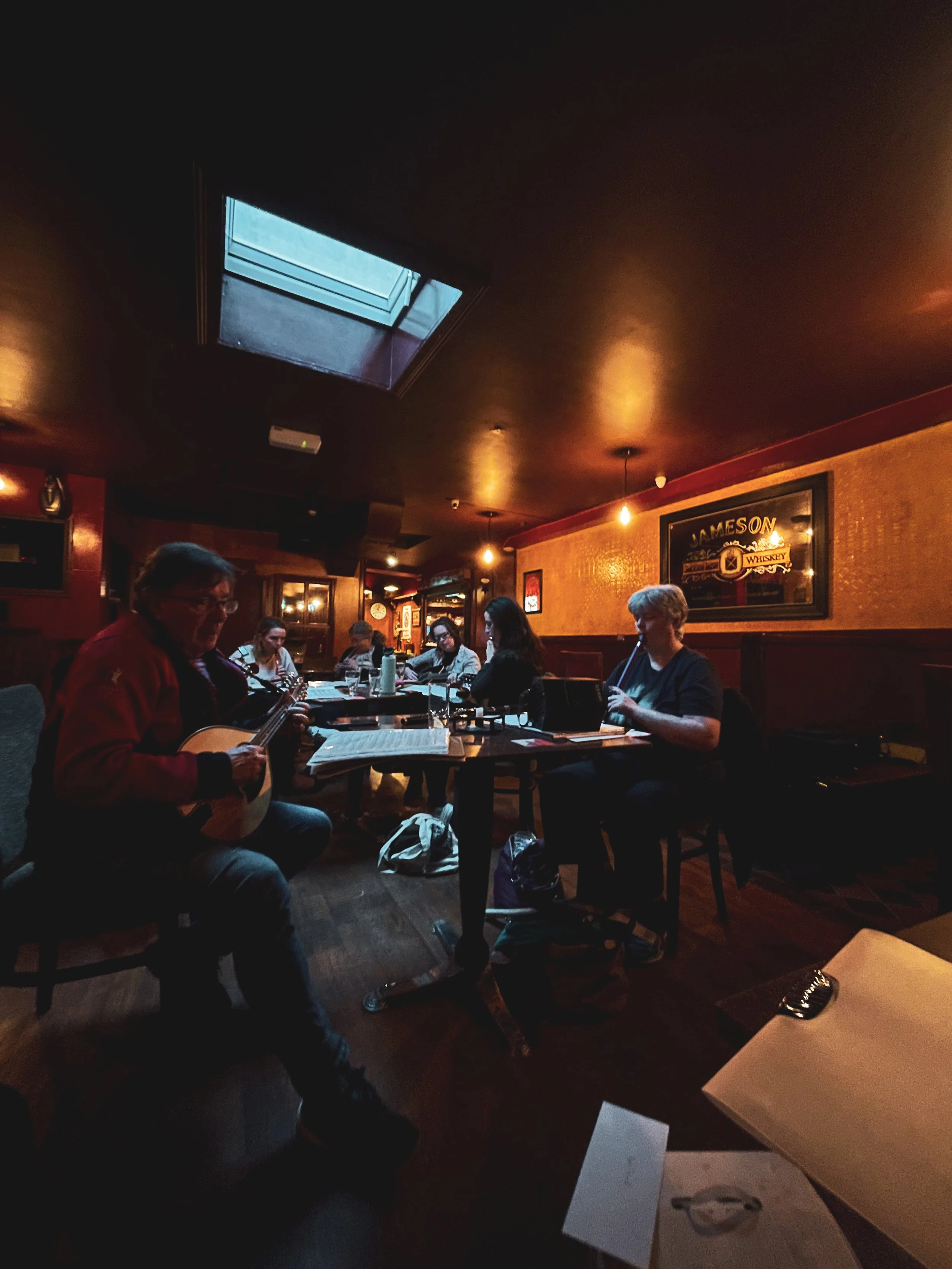 The accordion’s journey began in an Old Navy parking lot with a handoff from Bob, a NH local. Packing my fiddle, the accordion, all my remote work stuff, and gear for a 7-day hike was interesting; I ended up checking the accordion in a suitcase and hoped for the best. It made it to Dublin unscathed, and we went on a winding journey together along the Ring of Kerry and across the Ballaghisheen Pass. And on a Monday night in a bar called “The Office,” the accordion reached her new home: the Galway Slow Trad Session.