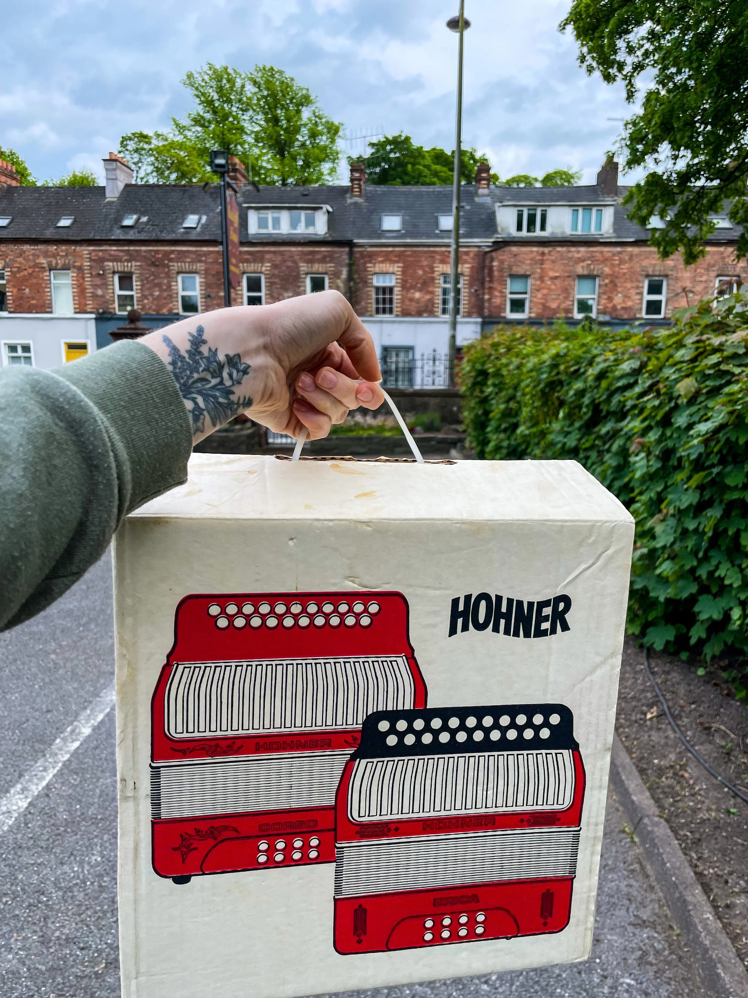 Deep in the winter, still stinging from my Wicklow Way failure, I saw a post asking for help. A long-established slow jam session in Galway had been on the hunt for a loaner accordion for decades. They finally had one offered for donation… but it was in New Hampshire. If anyone was coming from New England this summer, could they perhaps squeeze said squeezebox in their luggage?