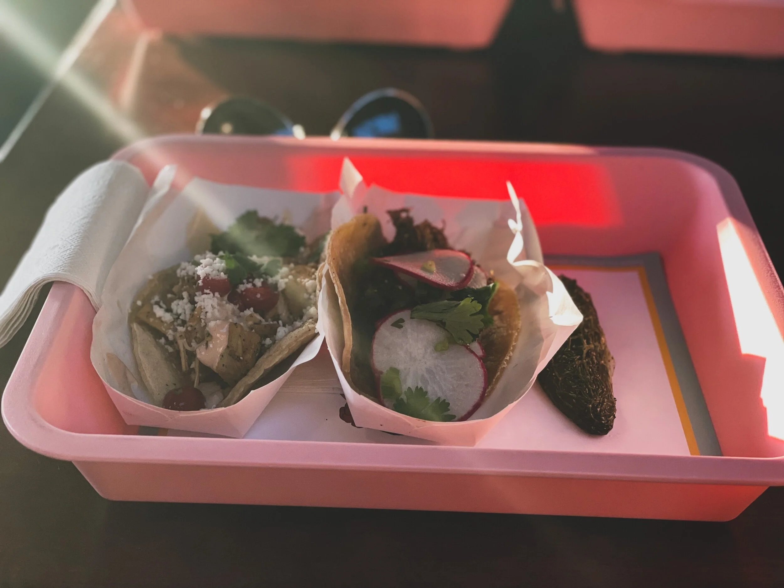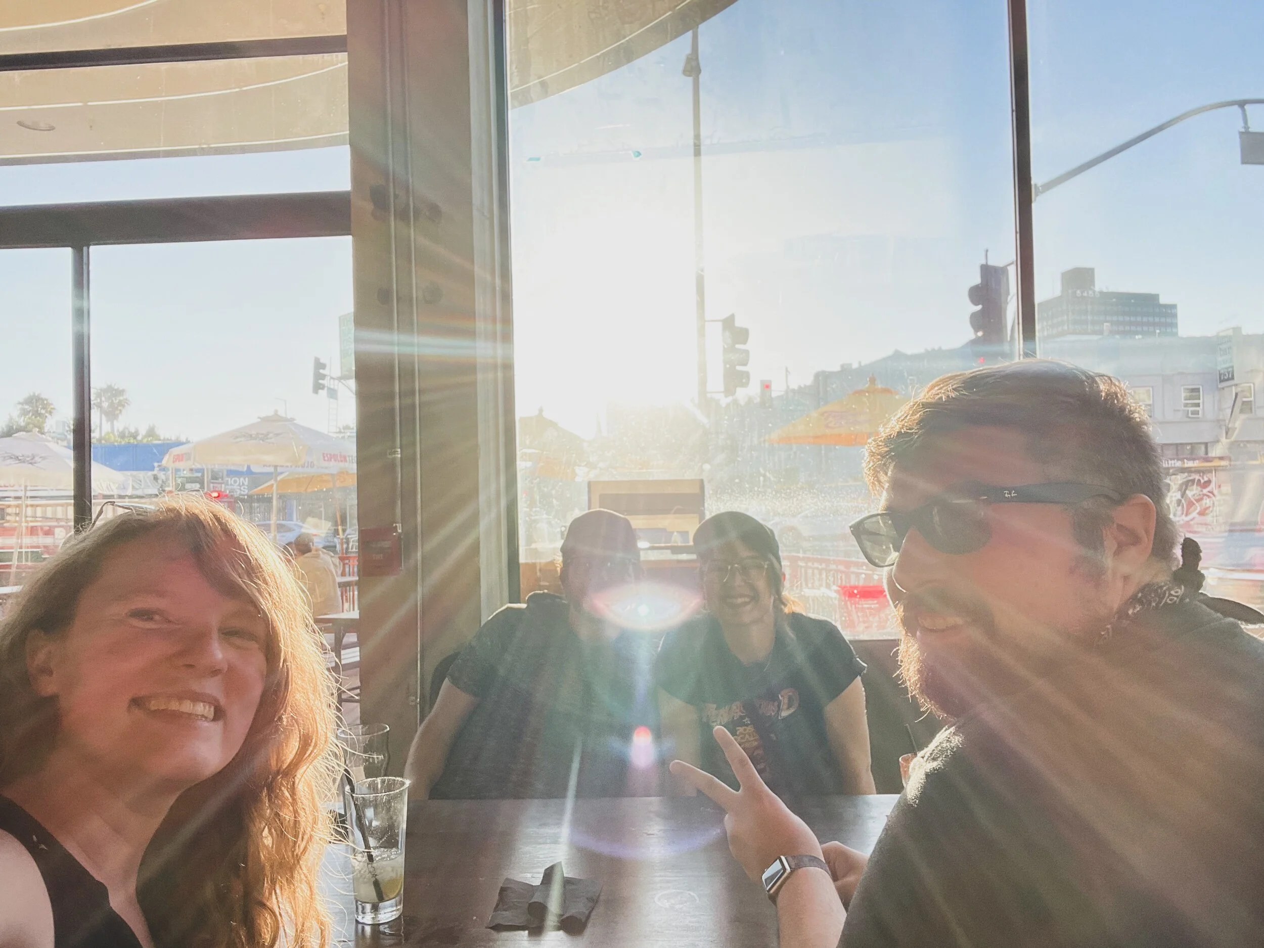 I was pretty bummed because a taco place we like, Salazar, wasn’t open. It’s in a renovated gas station and is very hip. Well, it didn’t matter, because our friends Alex and Victoria invited us to another taco place that was in a renovated tire shop and was also very hip. Never fear, LA is here.