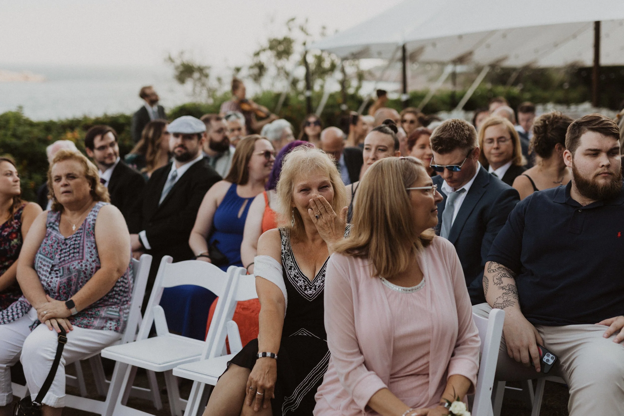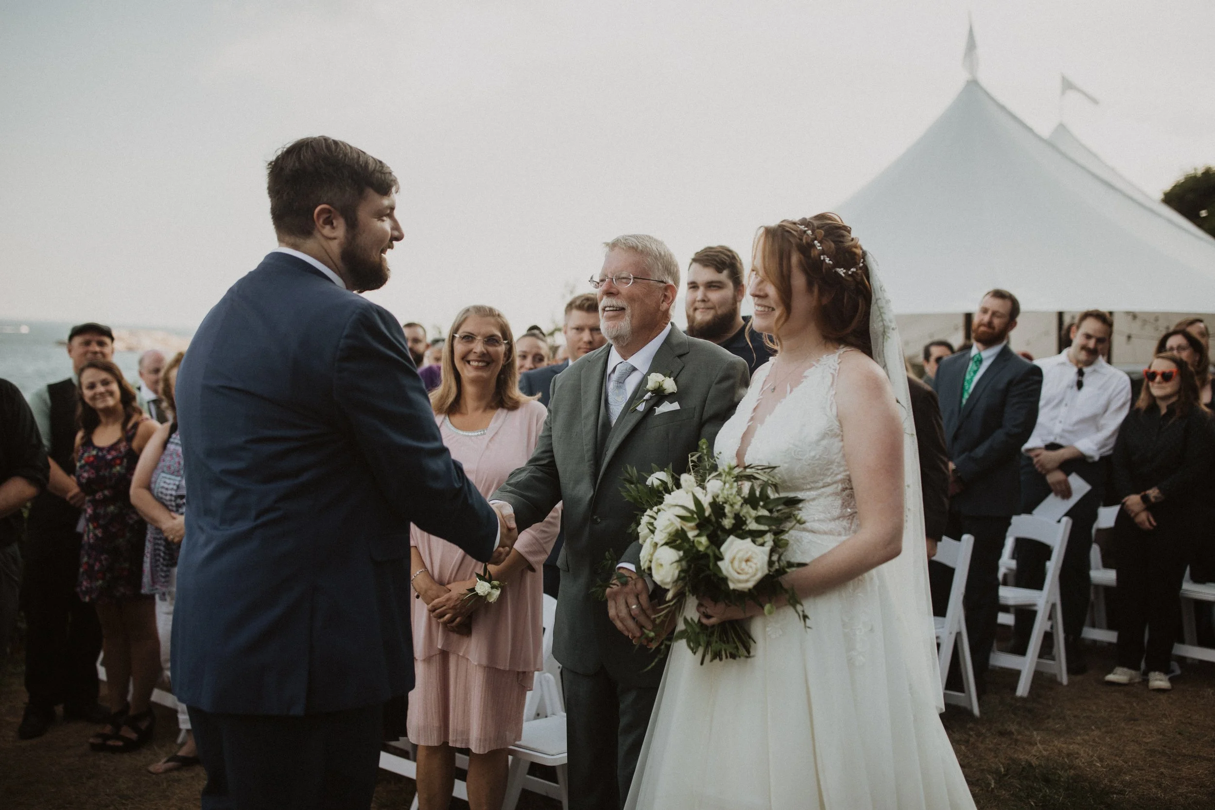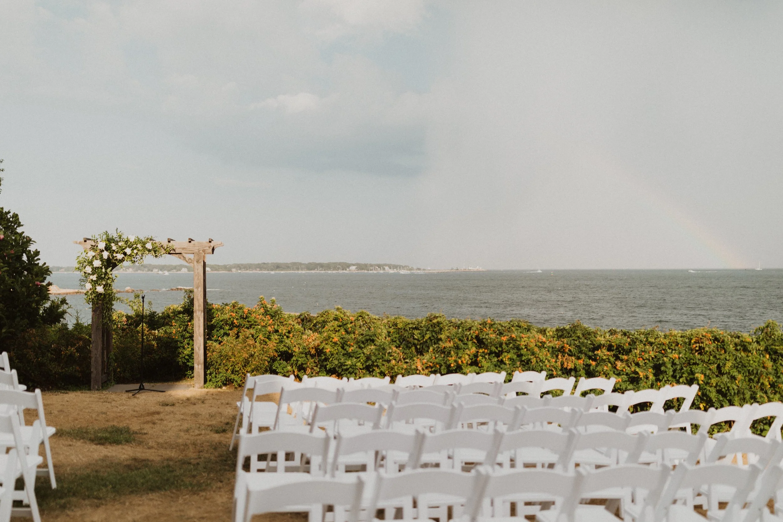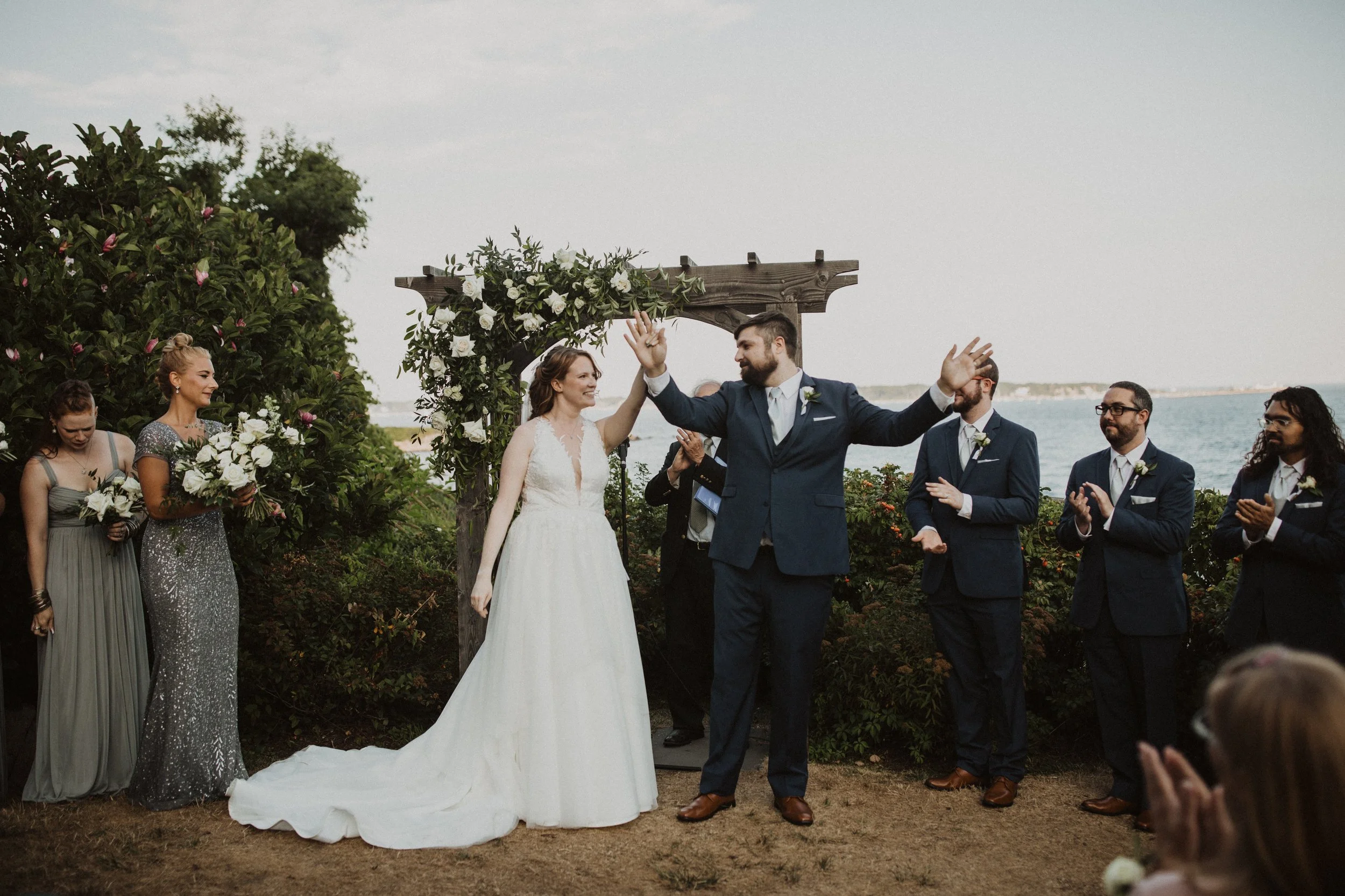 Our officiant was Larry Brickner Wood. He was the campus chaplain at UNH during my time there and director of the Waysmeet Center, a community space that I have many happy memories in. Larry is a preacher, but we kept our ceremony short, sweet, and agnostic. My favorite moment was beginning with a centering meditation with everyone; it had finally cooled off, the waves were crashing against the shore, and we could just FEEL all the love and support that surrounded us.