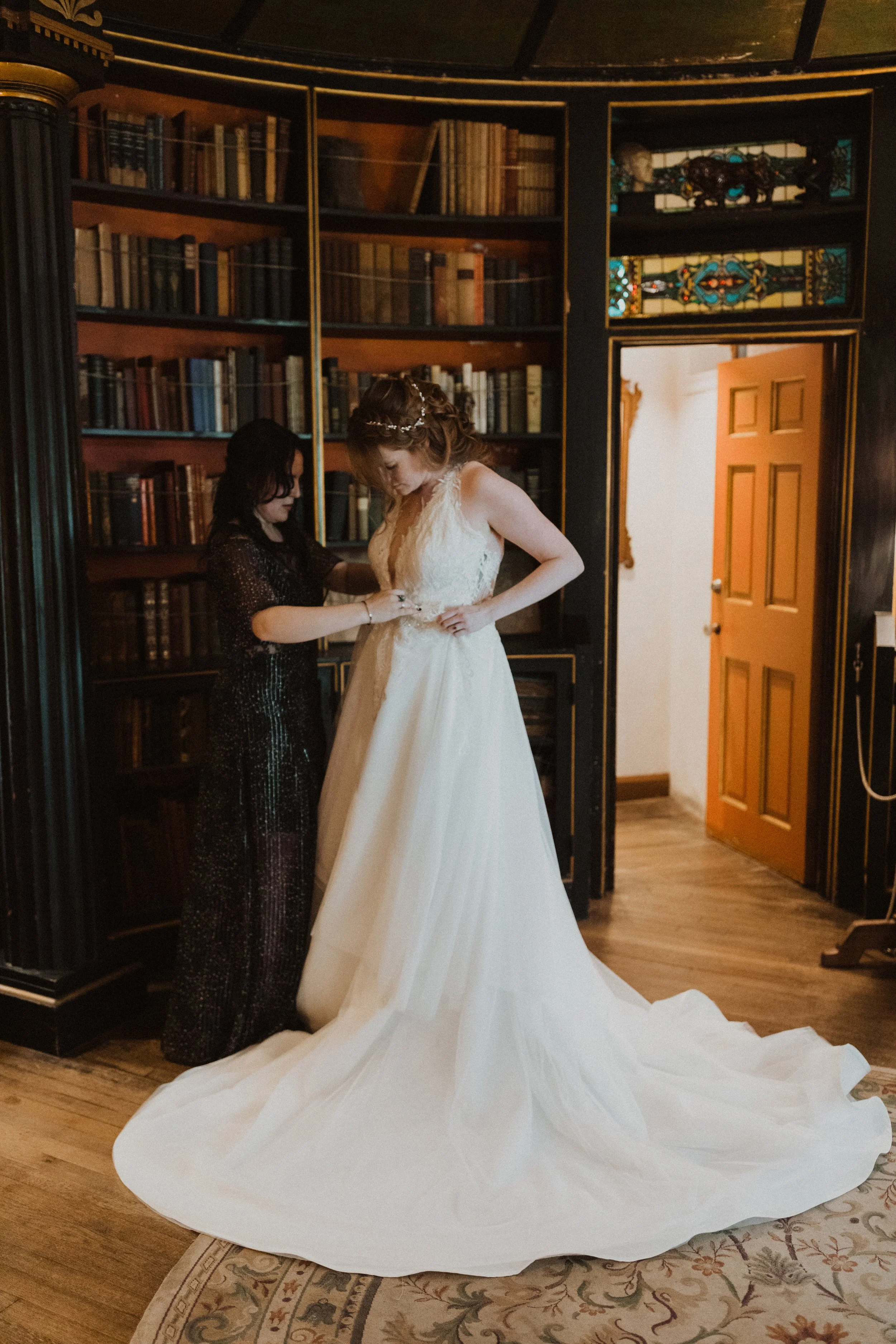 During our 75 years of being engaged, I had added on an overskirt with Jacki in a moment of indecision of fitted vs. flowy. Luckily, when your bestie is making your wedding dress, you can have it all!