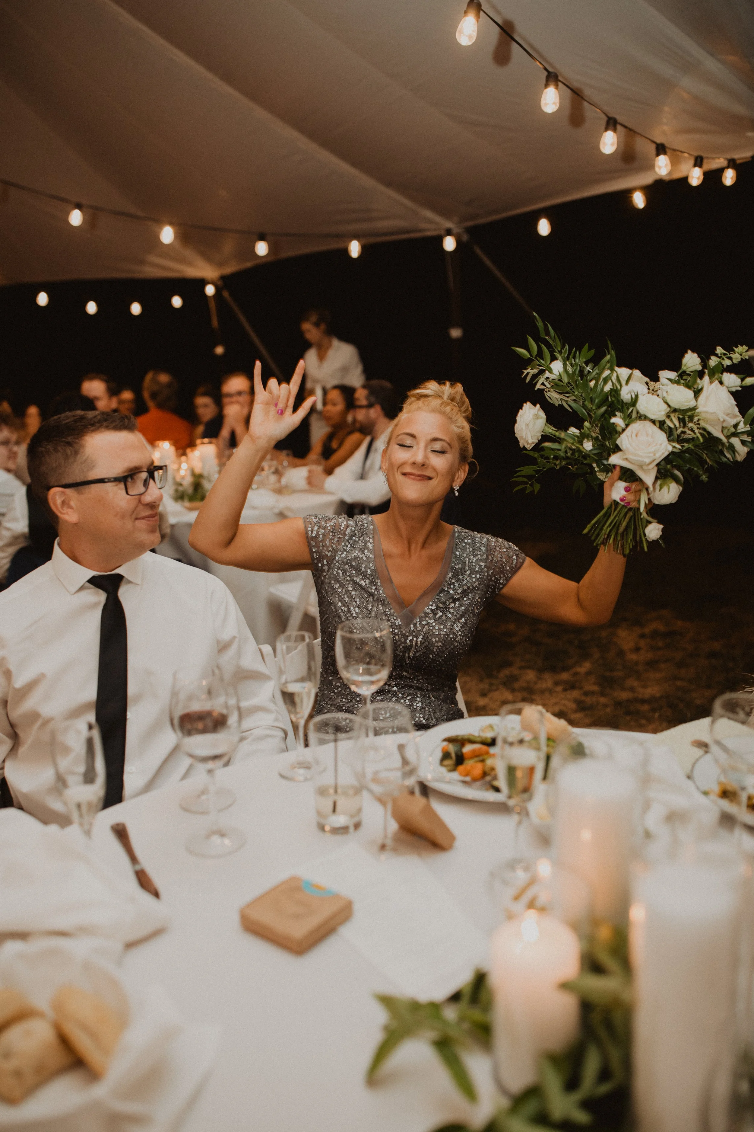 The last wedding to-do was the bouquet toss. I swear I did not intentionally toss it to Jill… I was just concerned about taking out the light system ;) She fought for it though!!