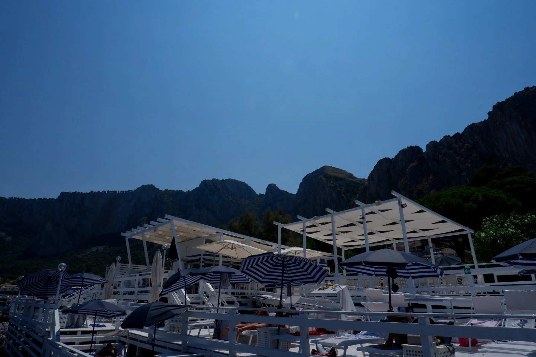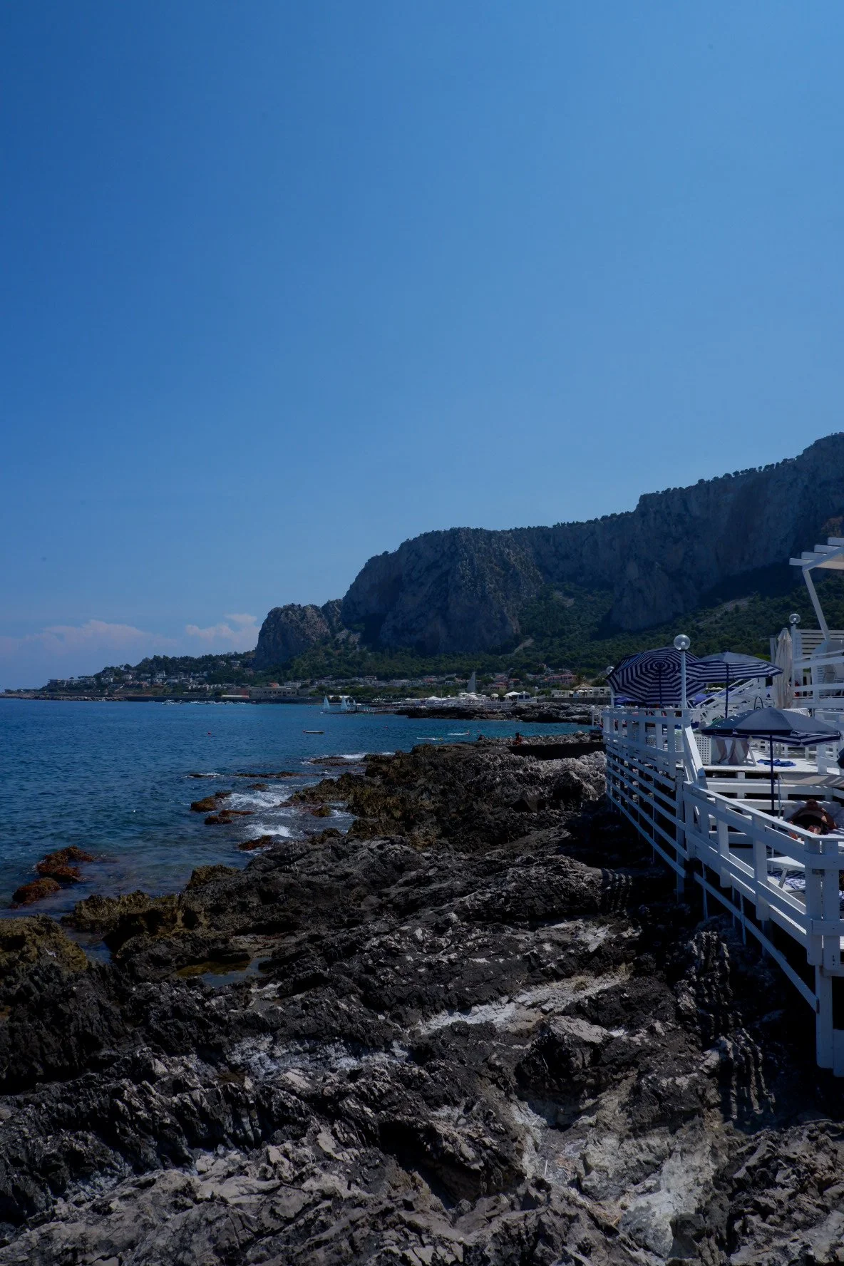 Our favorite thing we did during our stay in Palermo: spending the day at a beach club. There’s not many sandy beaches in Italy (or in Europe really), so this club built a little perch on some rocks and a railing to help you dump yourself in the Mediterranean. There were umbrellas to shield albinos like myself, and a little pasta restaurant. Pretty heavenly!