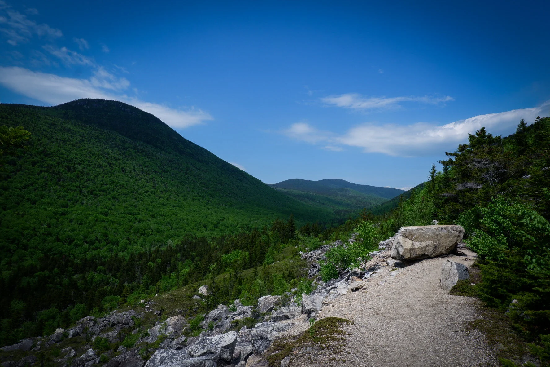 The trail significantly narrowed, and after some PUDS (pointless ups and downs… hiker jargon, getwithit) the trail opened up into a gorgeous view of the Pemi.