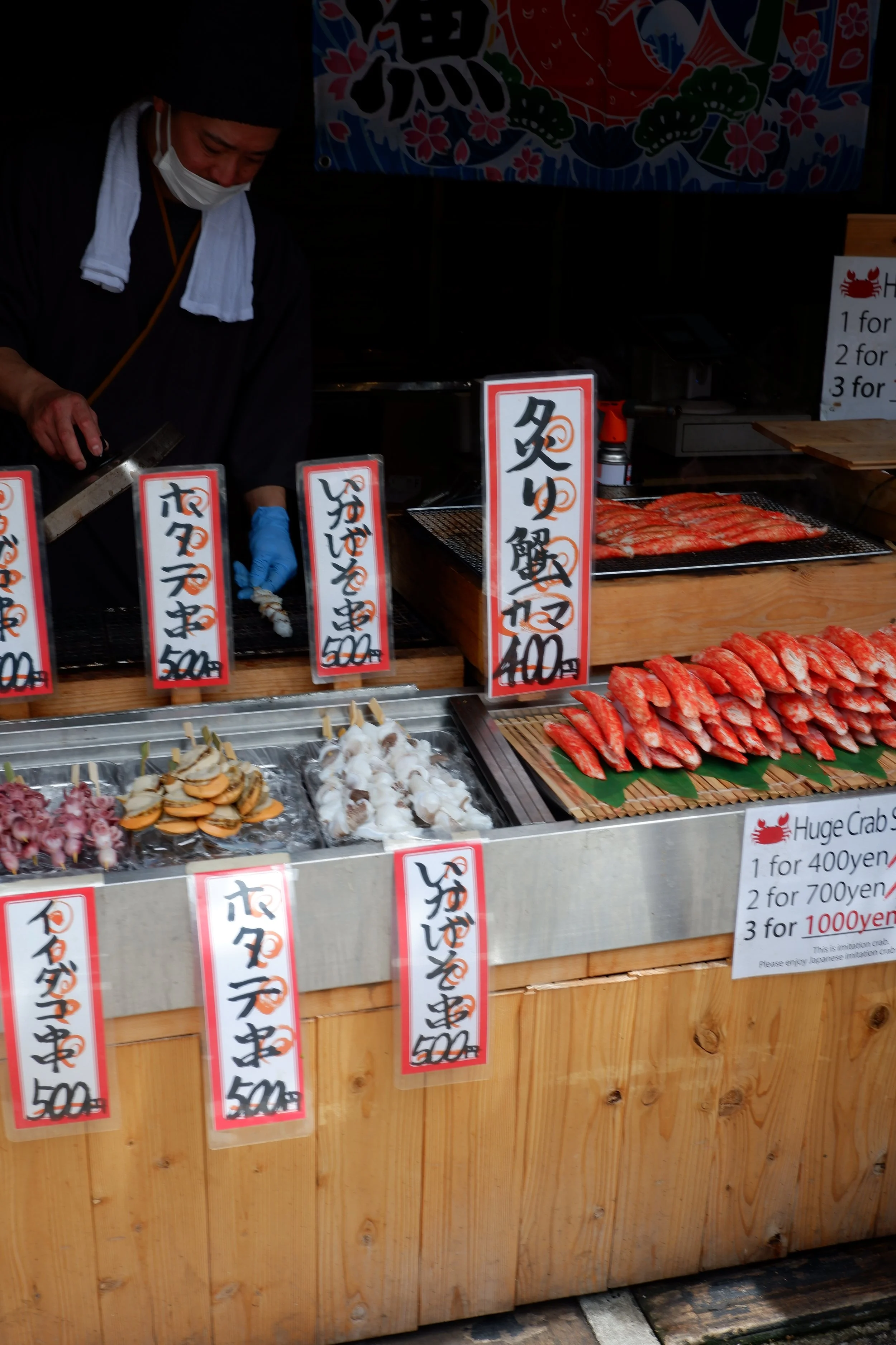 We visited the Nishiki Market first, then had three main stops: a wagyu beef place, a fish spot, and a tempura restaurant.