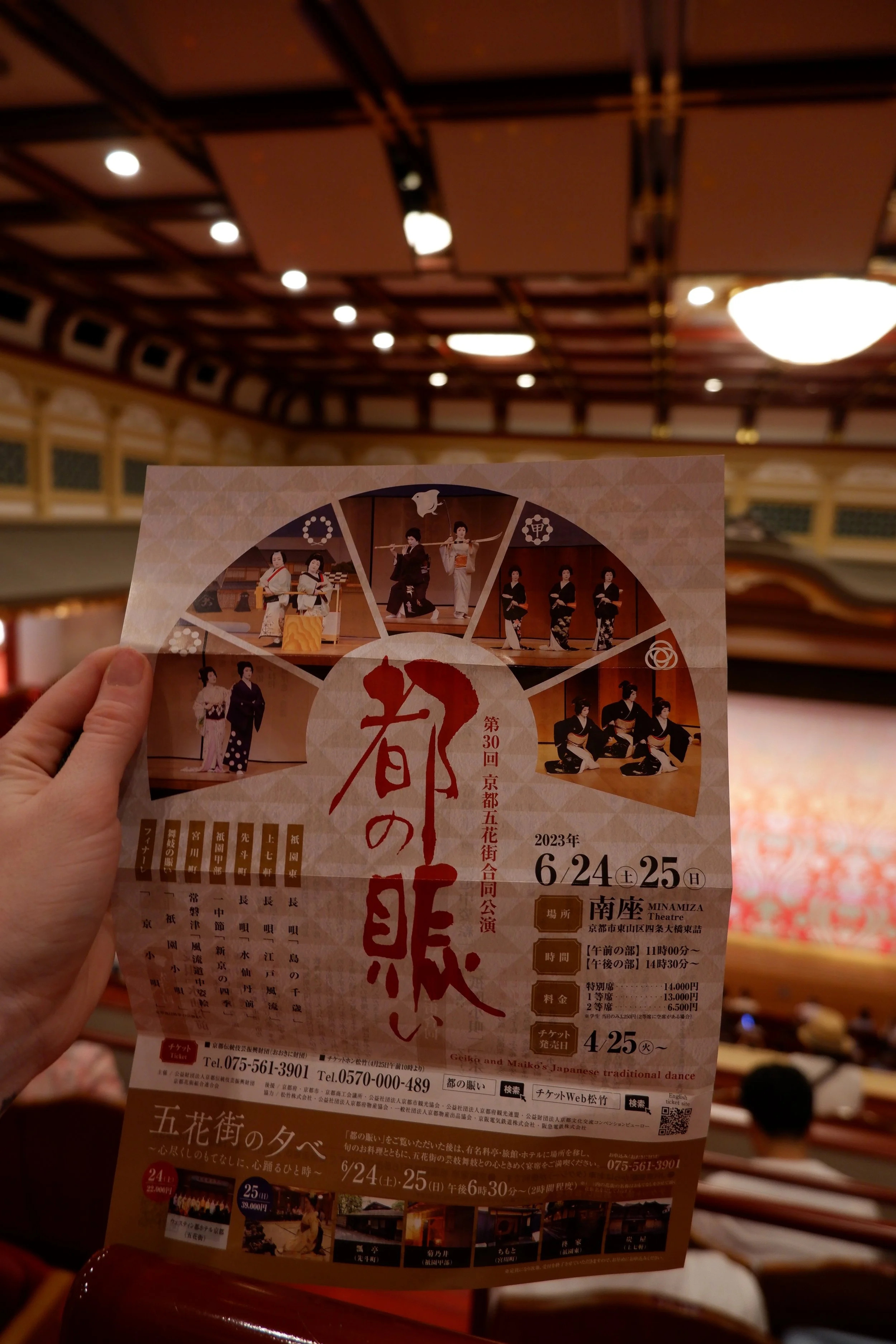 I rushed back to the hostel to change out of my soaked clothes. I had a ticket to a Geisha performance at Minazima Theatre. There were no photos allowed of the performance, but here’s a shot of the flyer:
