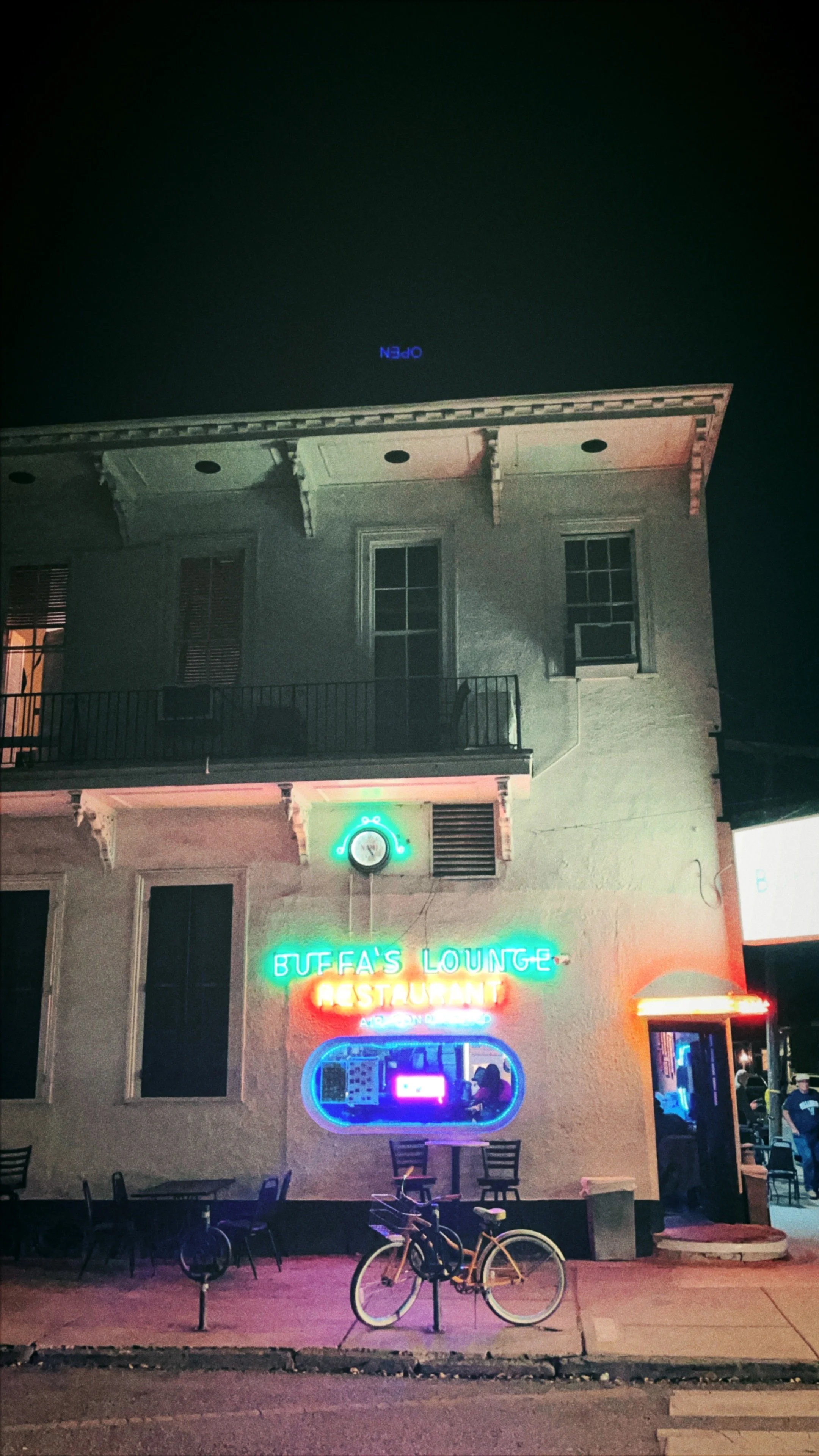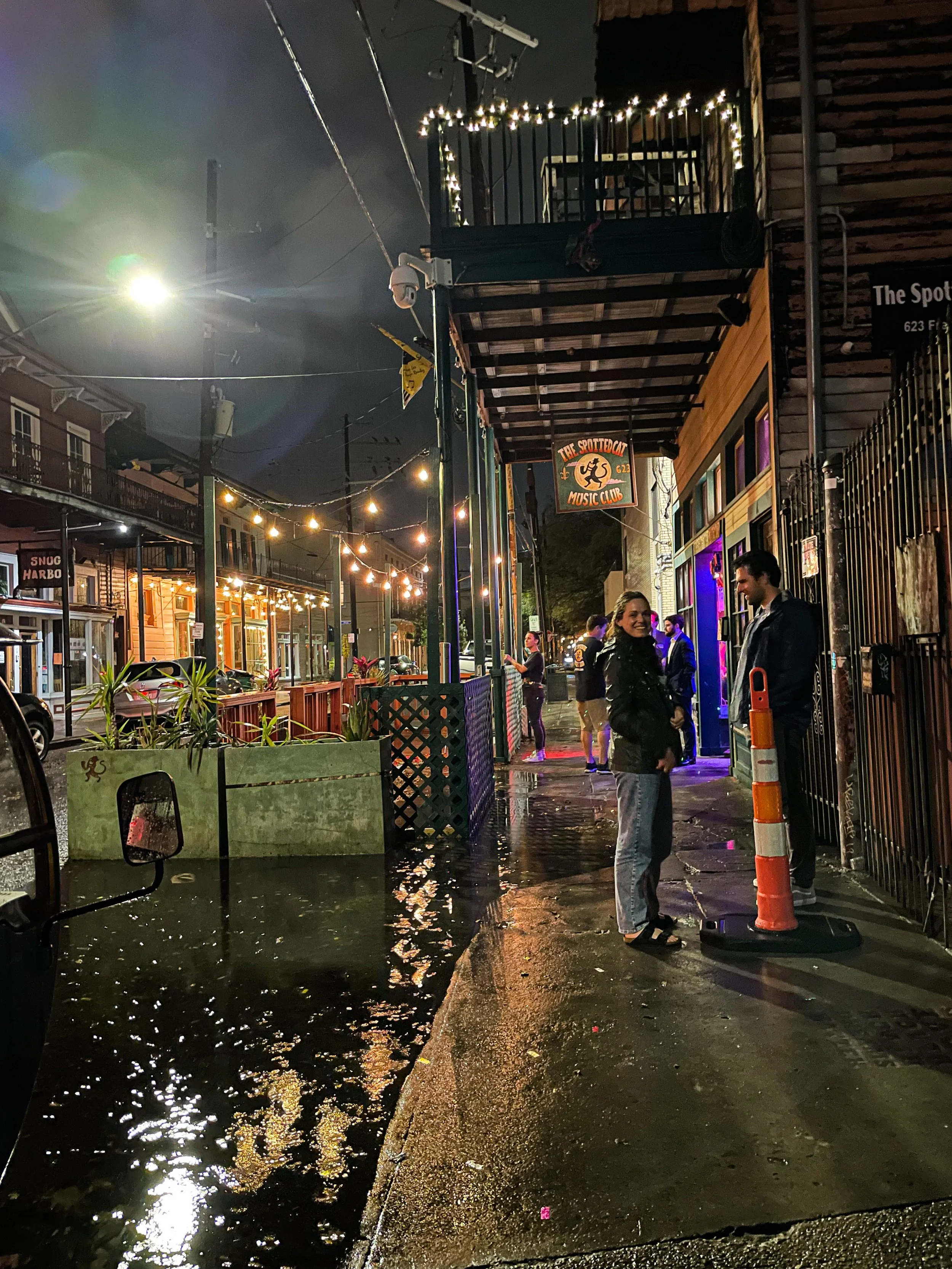 Oh shit! The sky was turning green outside and things were flying by the window. There’s no basements in New Orleans so we half jokingly discussed where to take shelter if things went sideways. (Under a load bearing wall behind the bar was decided). There were shots and toasts and the band pledged to keep playing “until the end.” (This sounds embellished but legitimately happened. It was very Titanic).