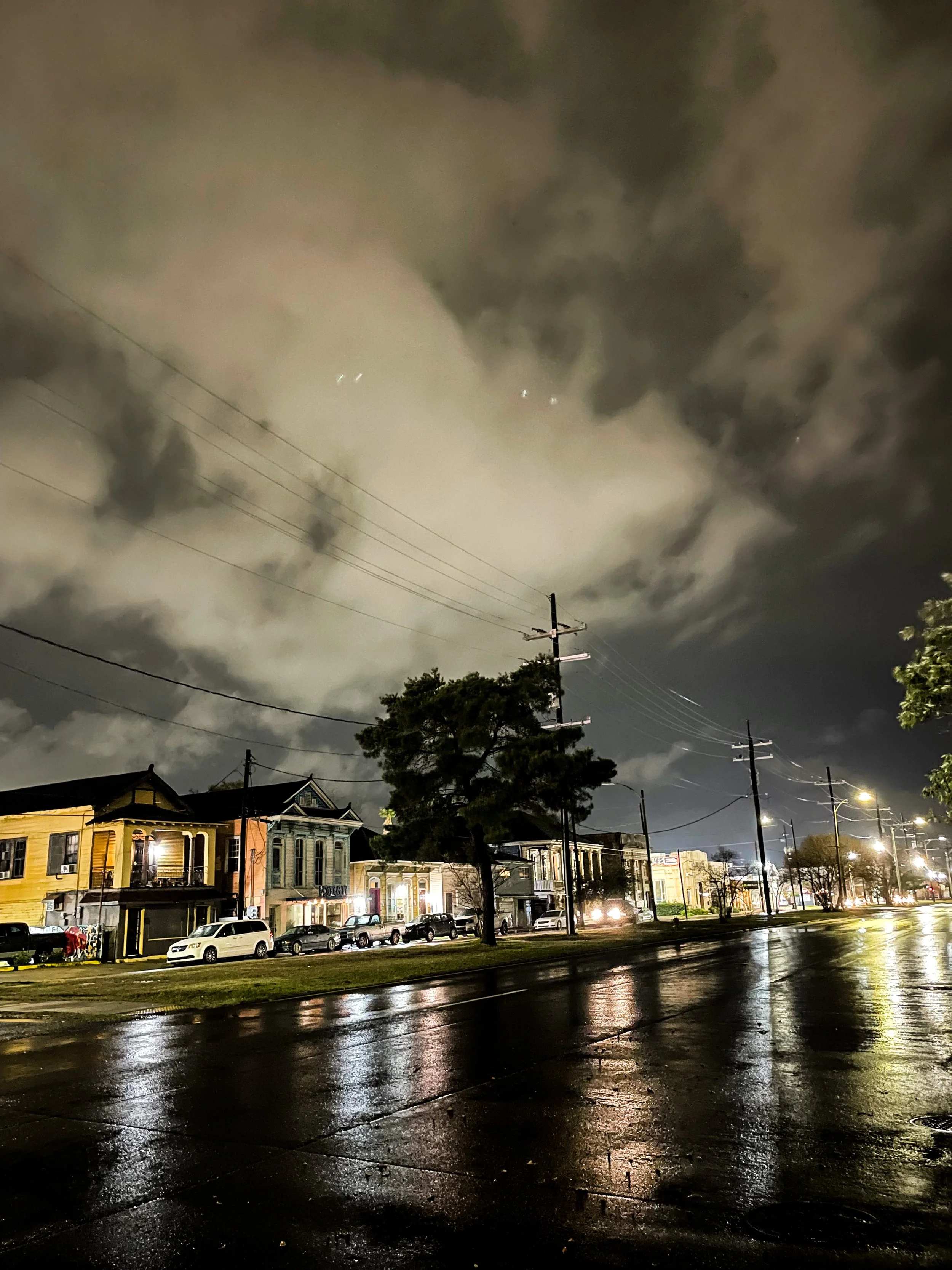 It was a stellar couple of days & nights in my favorite city. Bill often joined Rachel and I for our galavanting. One night, we took a sobering drive to see the tornado damage in Arabi. It was wild- one side of the street would be pristine, and the other side wrecked.