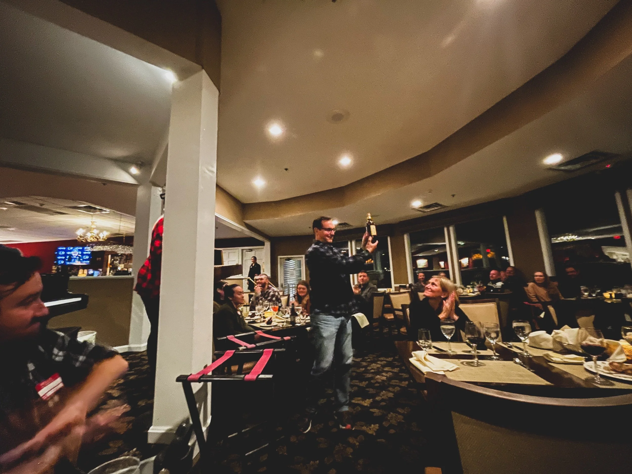 I was in good company at Nestlenook Farm, followed by mountain sushi at Delaney’s. We checked in to our cute mountainside hotel, the White Mountain Hotel and Resort and gathered for dinner. My longtime boss Brent was celebrating 10 years at NEMO. He is one of the 3 regular readers of this blog. Congrats Brent!