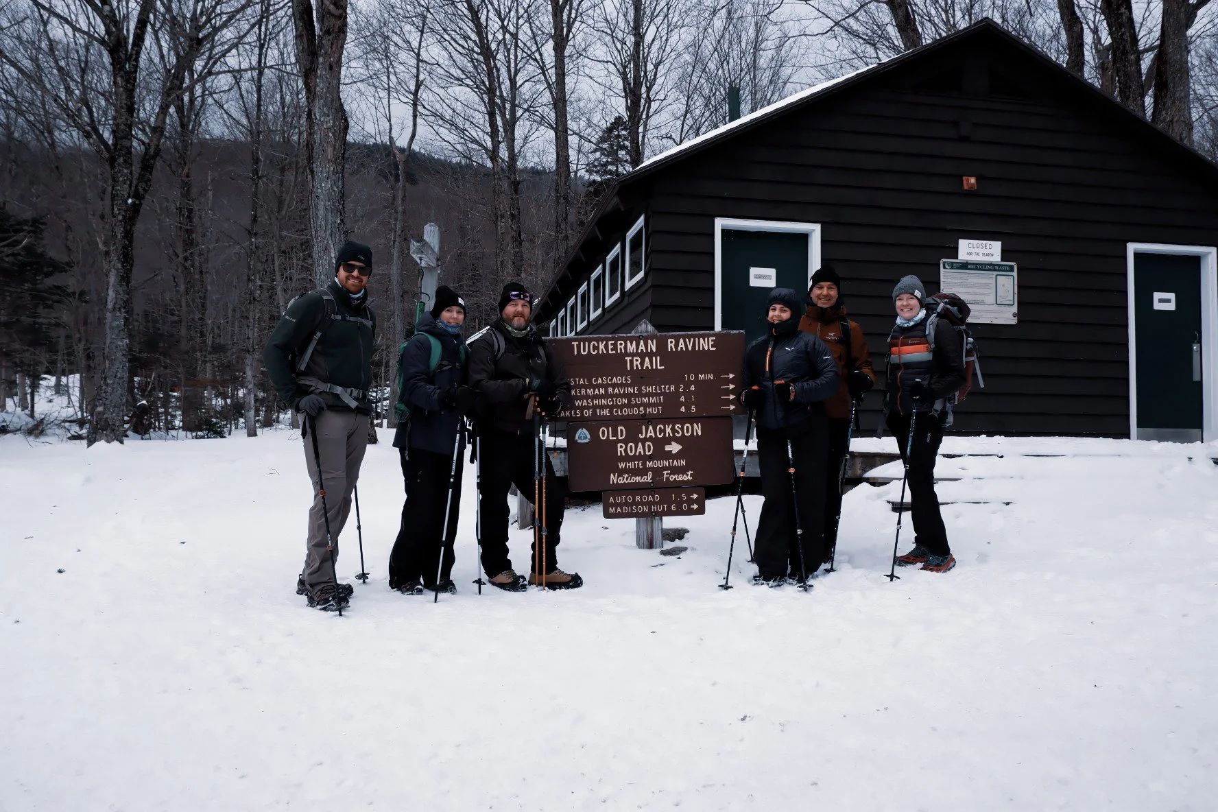 Tuckerman’s Ravine lies at the base of Mount Washington’s final push. I’ve hiked it twice, once in the summer where I tackled the headwall to the summit, and once in the winter with a polar bear sled in hand. The winter trip was especially spectacular, and I remembered it not being THAAAAT hard, so I cajoled 5 of the extended NEMO crew into a winter wonderland hike.