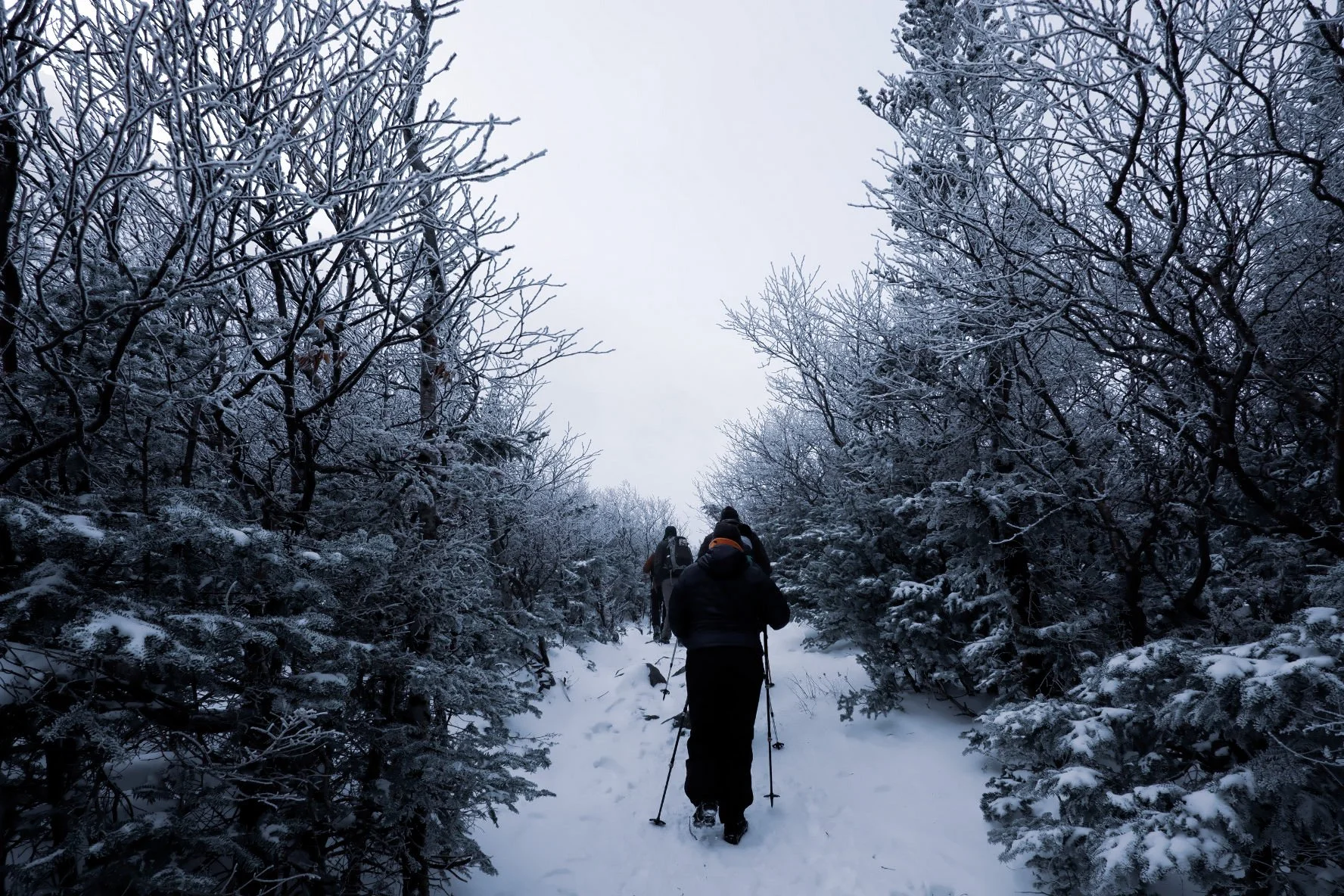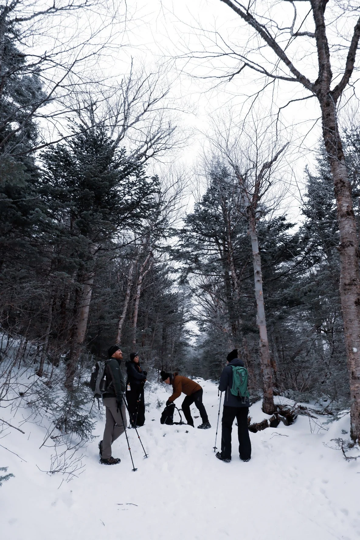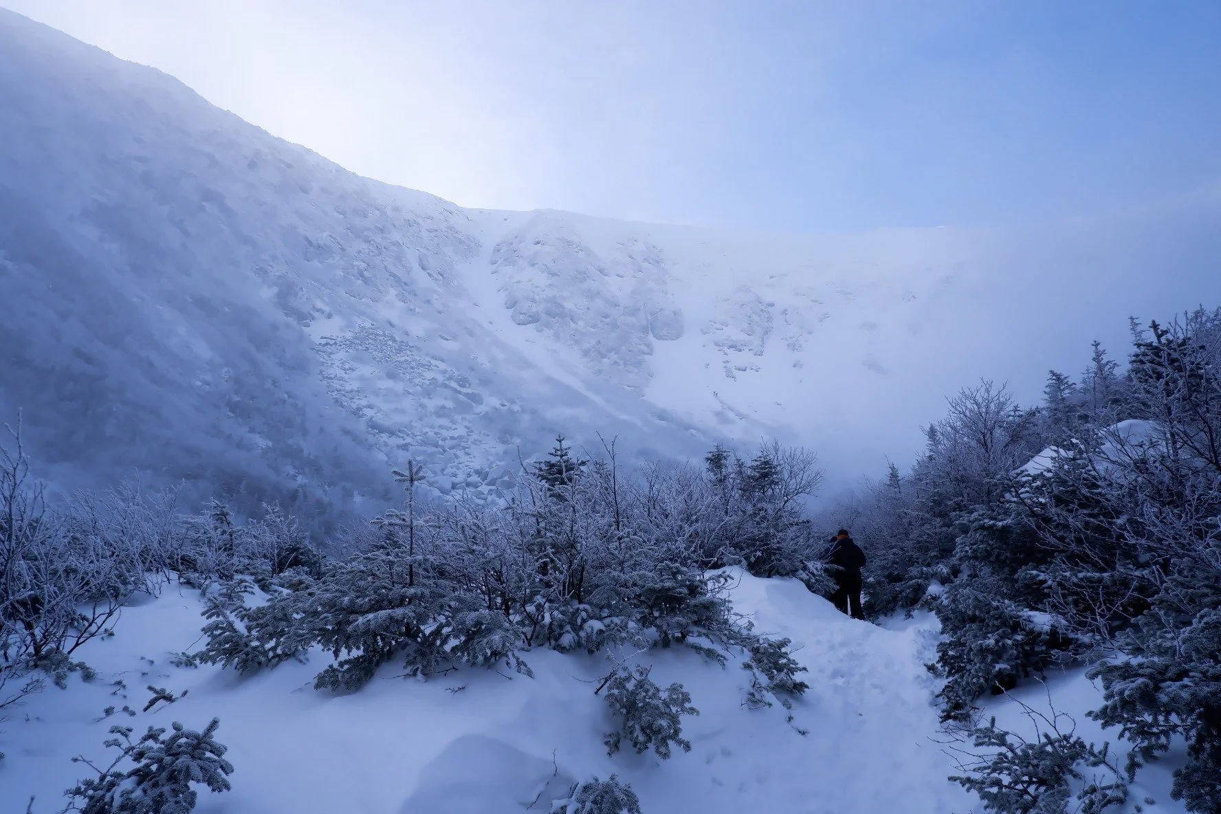 It was cold as shit at Pinkhams Notch. The AMC lodge there had some rental gear that came in clutch for our crew (including me… I need to buy some poles). We strapped on our microspikes and headed up.