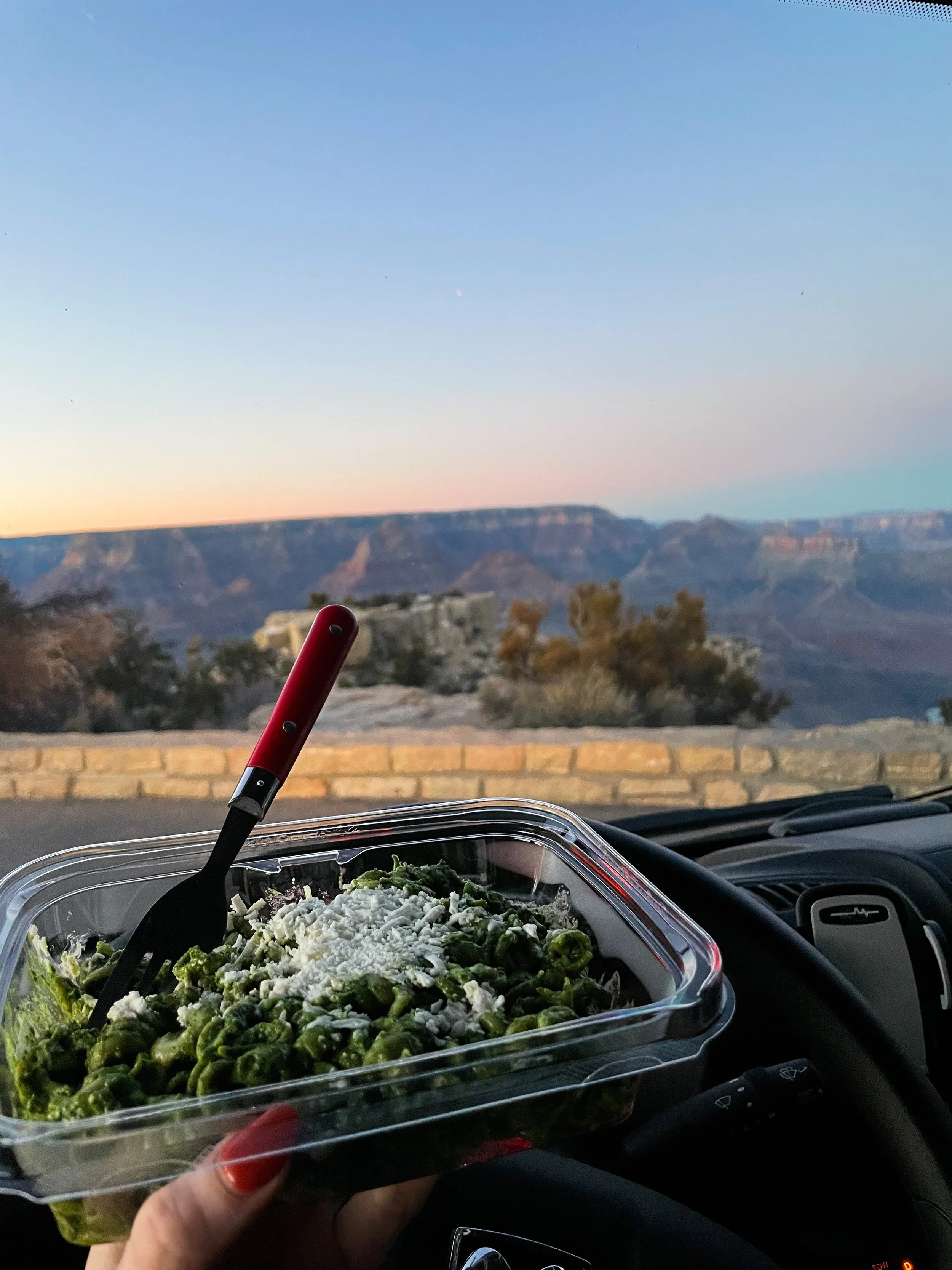 I picked up an America the Beautiful Pass and drove along the canyon. I stopped to watch the sunset and enjoyed dinner with a view.