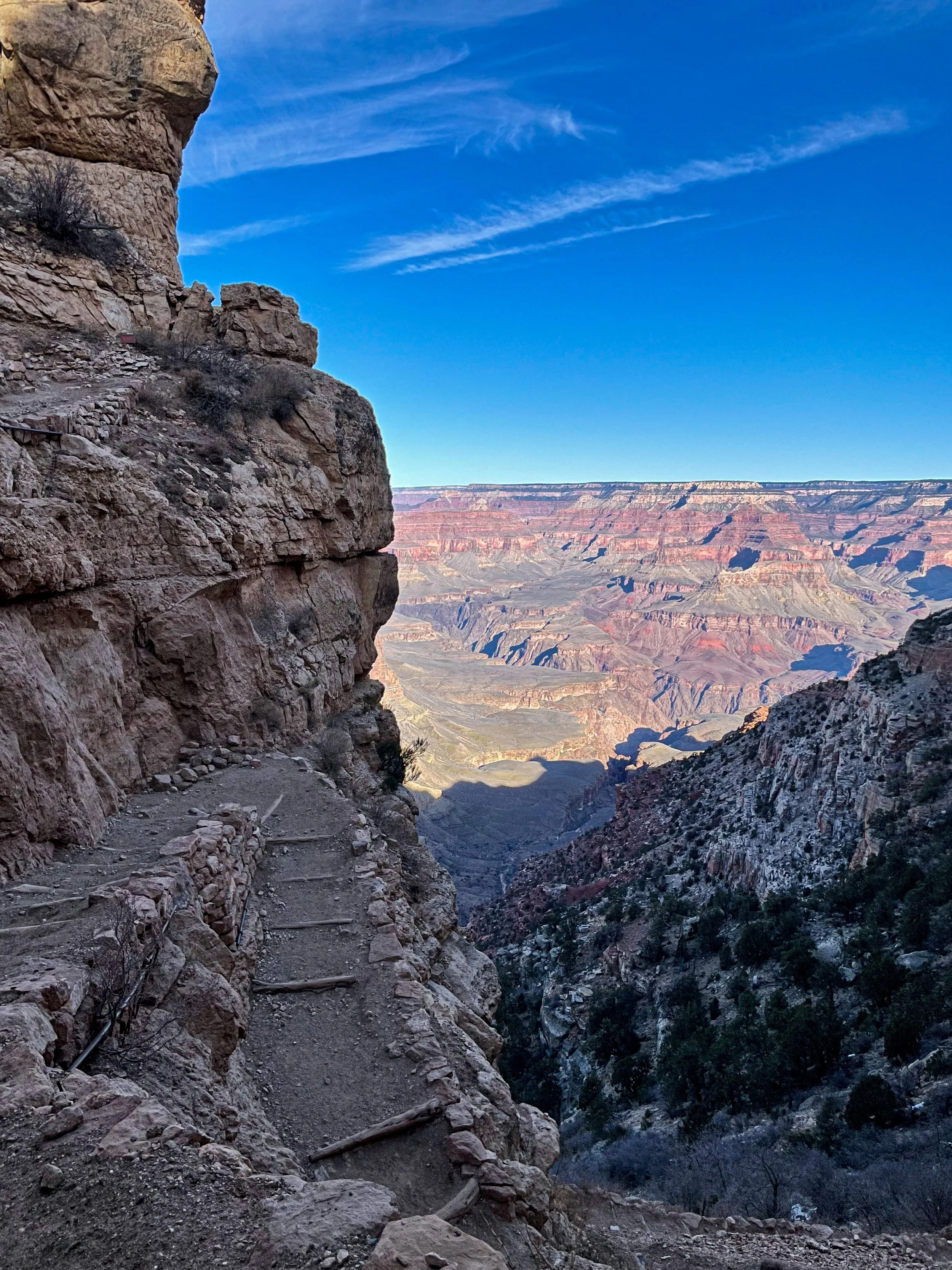 I reentered the park and prepared for my hike to Cedar Ridge along the South Kaibab Trail. It was a two mile hike down into the canyon along a famous trail. I was excited to hike, but nervous about 1) slipping on ice and falling to my death and 2) tripping on a rock and falling to my death.