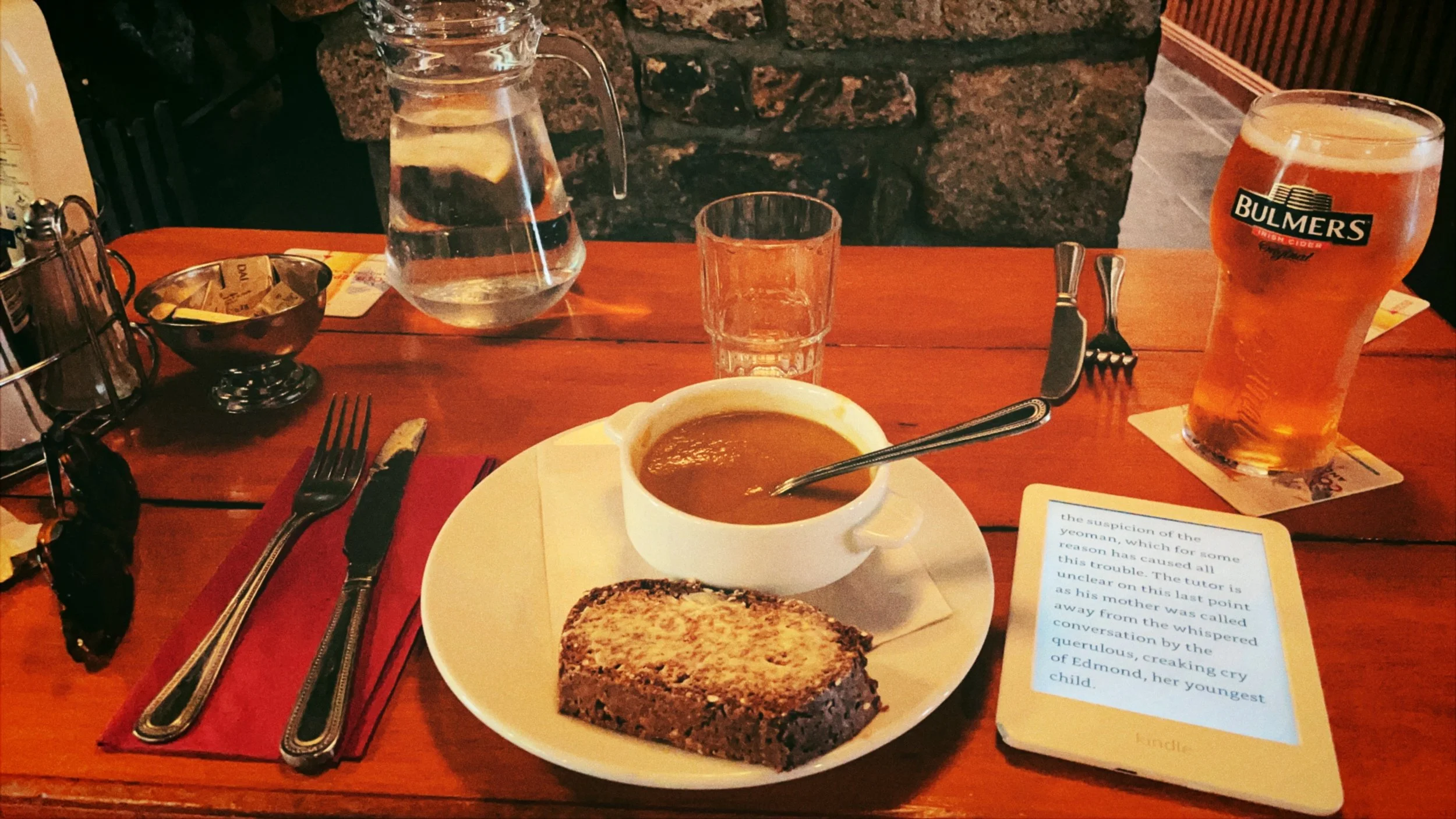 I descended into the glacial valley of Drumgoff which had an amazing stone-lined pub at the Glenmalure Lodge. Soup, bread and pasta fueled me up. I had become religious about having a pint of Bulmers Cider with my dinner; apples are good for you and alcohol is a muscle relaxant, right?