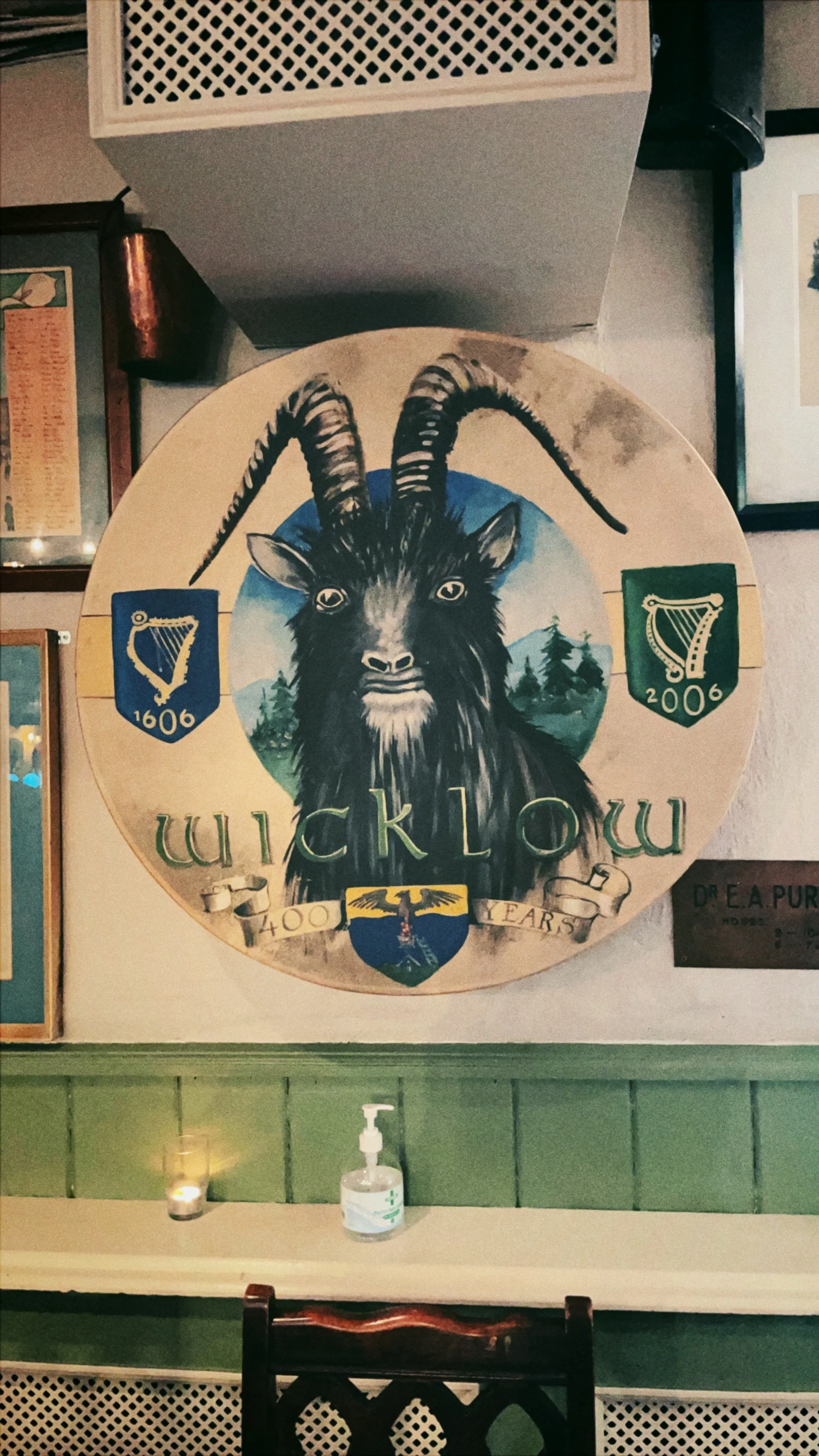 These paved treks into town were demoralizing after a long day of hiking. I usually went deep into my pain cave and started thinking about snacks and such. So when I heard “Theresa? Theresa?” during my final steps into Laragh, I legitimately thought I was hallucinating. Nope, it was Renate and Paul, my Dutch pals from Day 1! We ate dinner together at the local pub, where I laughed heartily at this giant Black Phillip.