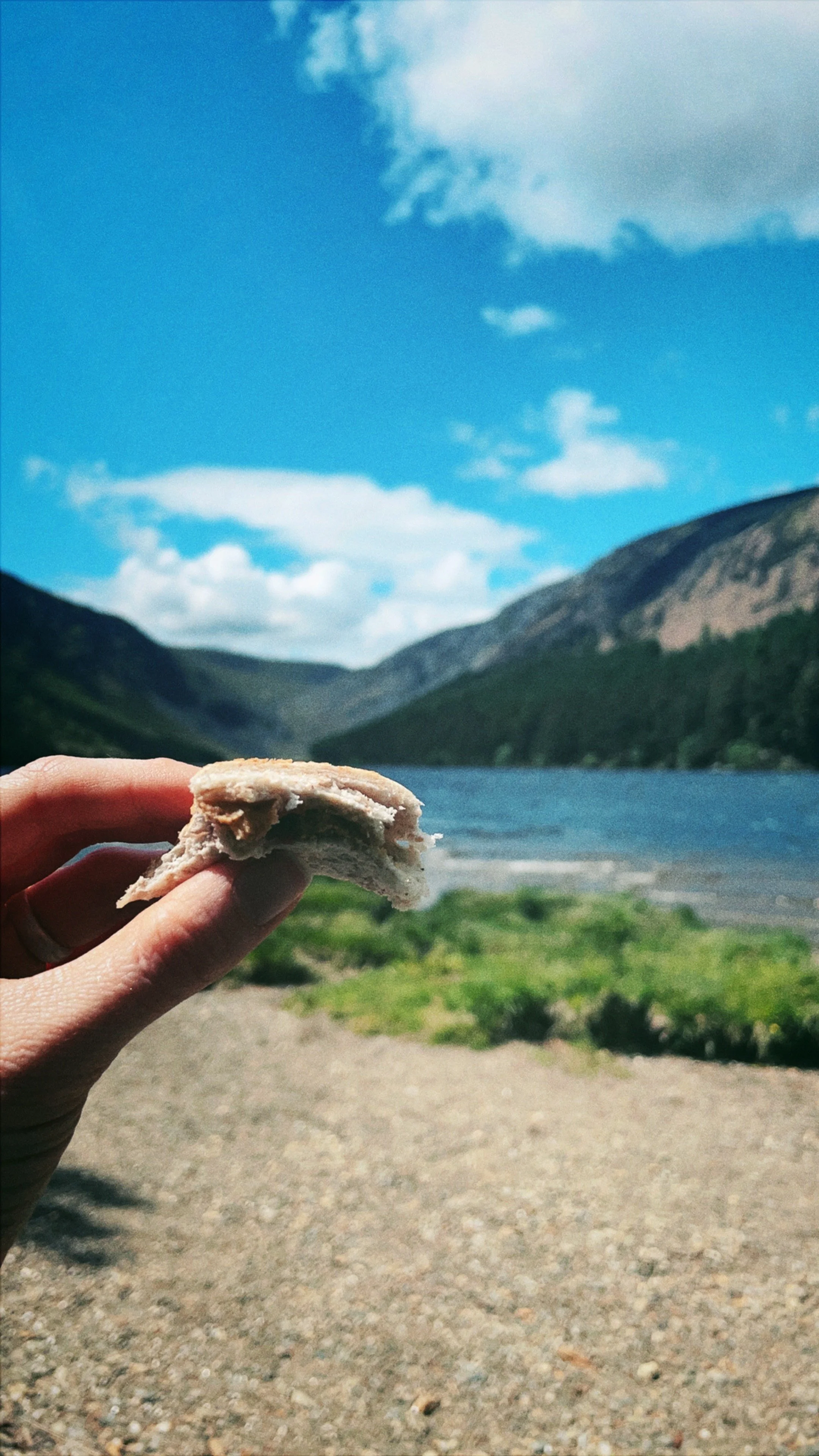 Two days BEFORE I arrived at Lough Dan, I whipped out the rain gear for the first time while high up above Drumgoff. It was thrilling to be up in the foothills of the mountains getting slapped by rain and wind. I was settling into a rhythm of happily hiking in silence till lunch, then jamming on some tunes when my energy dipped in the afternoon. I was obsessed with the latest Beolach album, with “Schooner Lane” especially putting pep in my step, rain be damned.